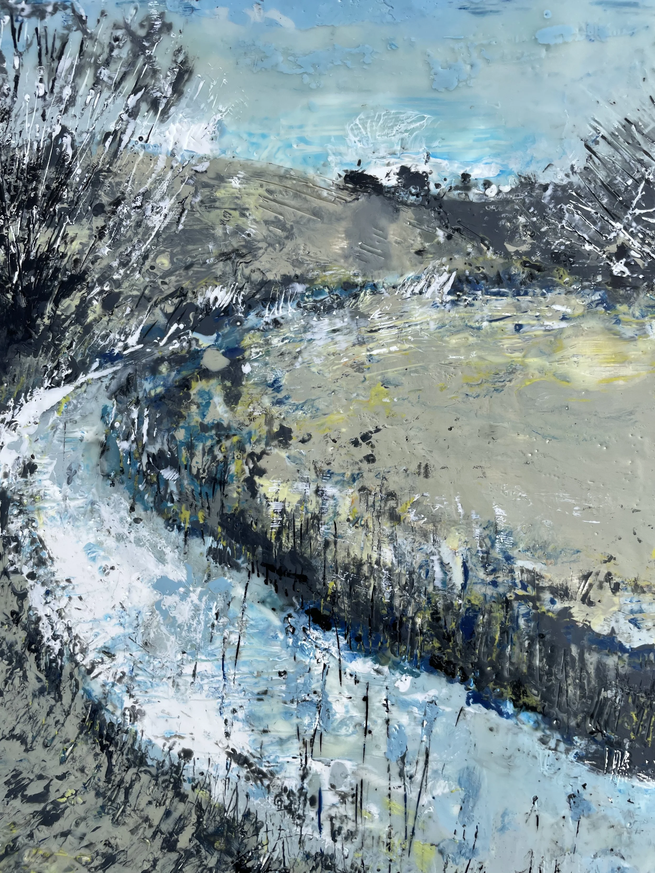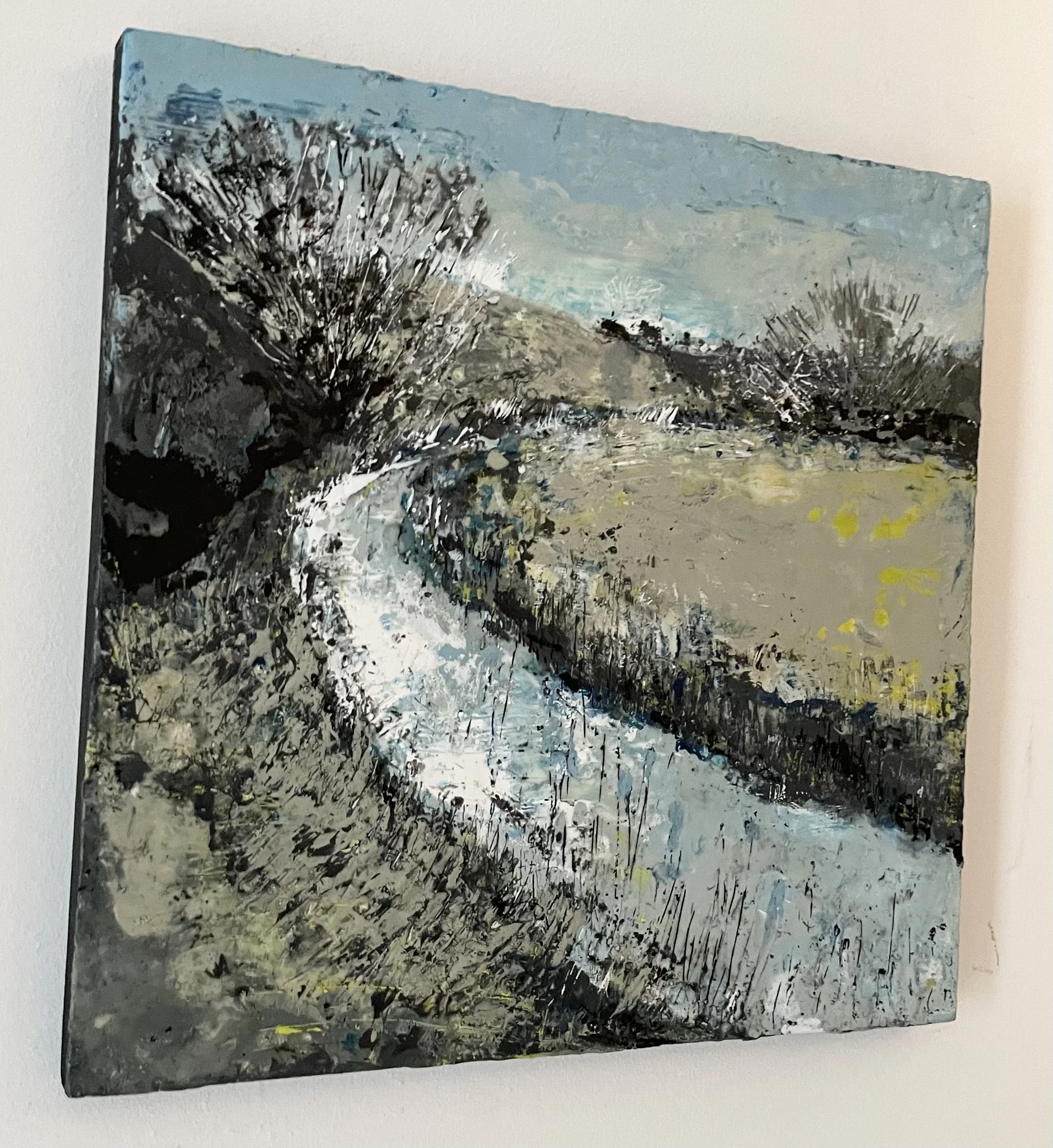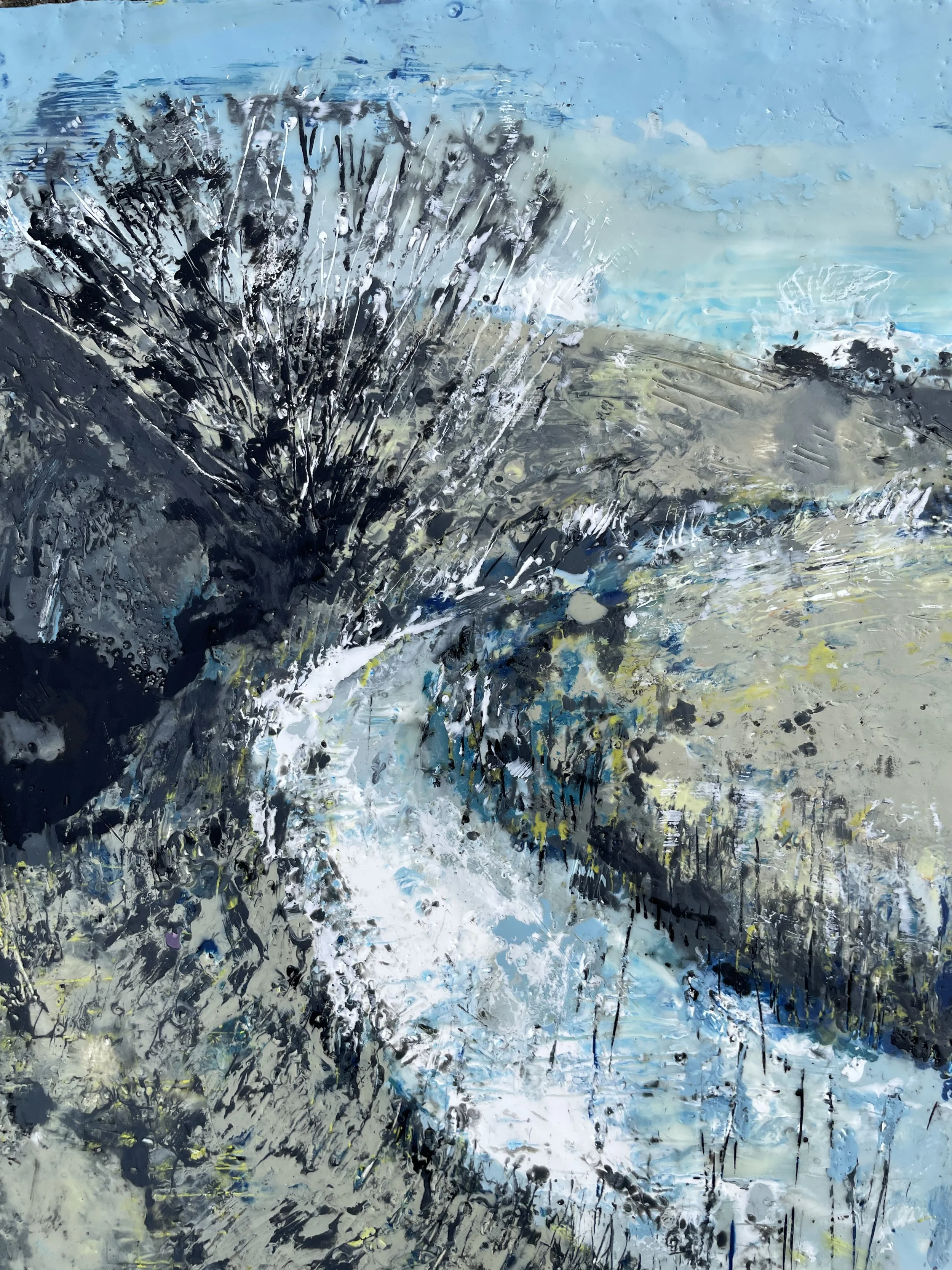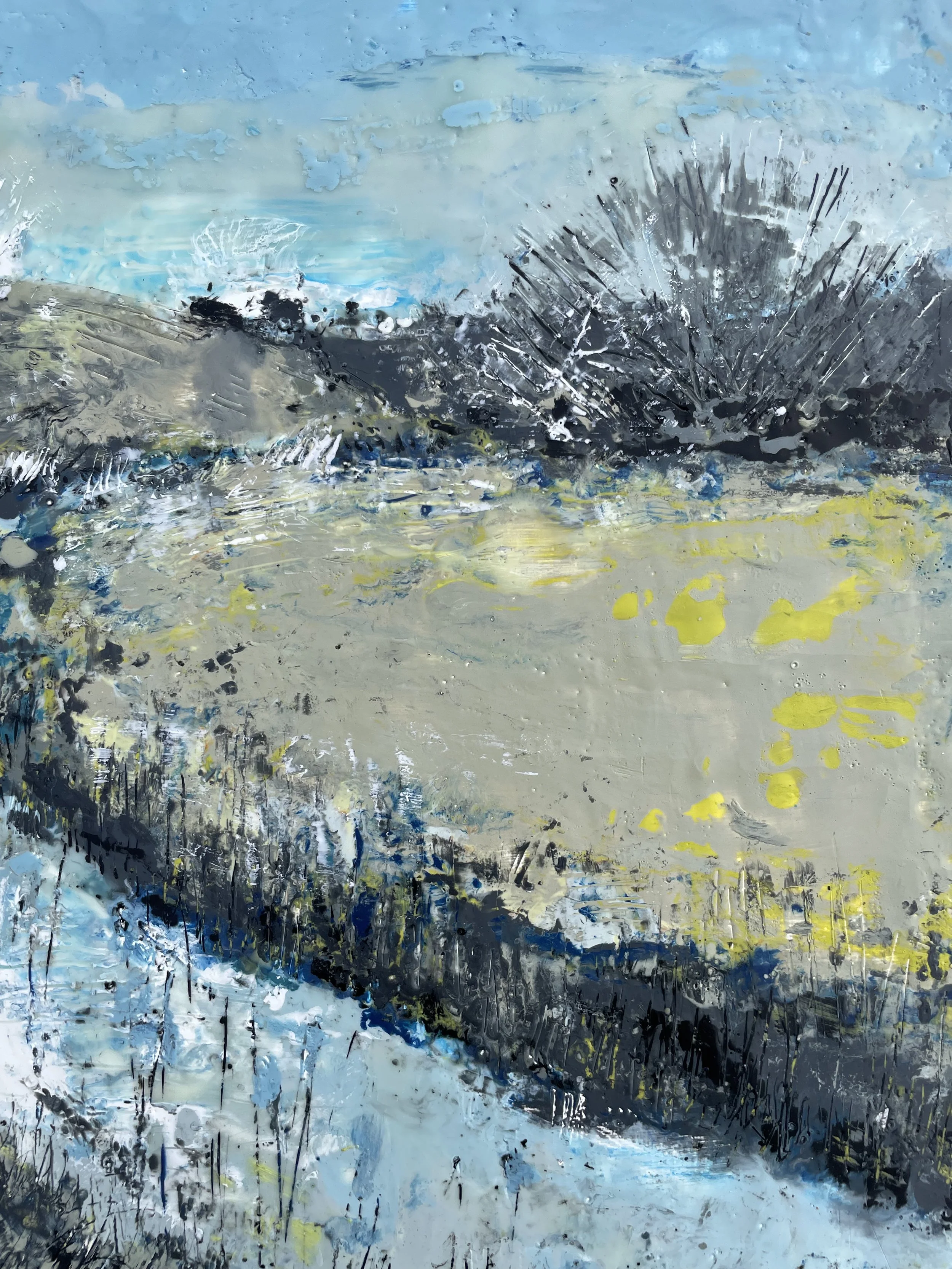 Each painting is a bespoke original, no prints are available. All paintings are sold unframed, painted on wooden encaustic board (2 cm depth) with black painted edges and wire hangers unless otherwise noted. It is not recommended to place encaustic paintings behind glass, as the texture should be felt as well as seen. This art is safe to gently touch!